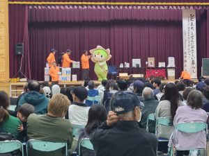 山崎町の城下地区でコロナ以来の6年ぶりのお祭りが地元の小学校でありました。体育館で地元の保育園の子供たちがフラフープや歌などを披露したり講演会があったり9時から2時まで大勢の人で賑わっていました。体育館の前には10店ほどのキッチンカーも並んでいました。2時からは恒例の福引会。市長も参加して満員の体育館は大いに盛り上がっていました\(^o^)/