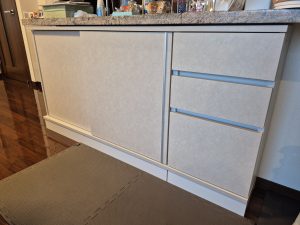 アンケートで商品・接客・価格・設置・納期の全てでご満足いただきました。ありがとうございます!石目調のカウンターとすきまくんの“シルクベージュ”の色がとても良くマッチしてますね\(^o^)/